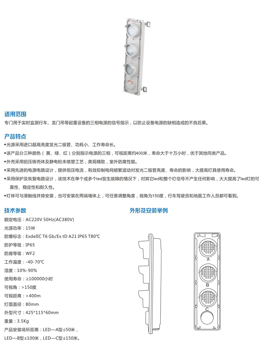 BAD808-LED防爆滑触线信号指示灯