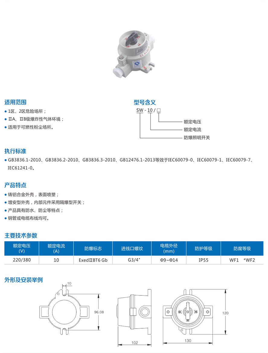 SW-10系列防爆照明开关(ⅡB)