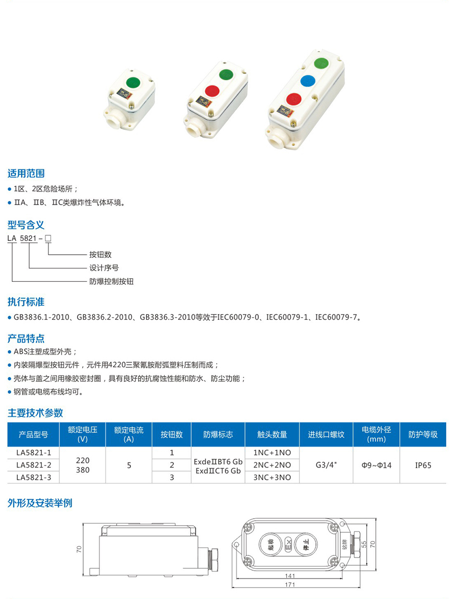 LA5821系列防爆控制按钮(ⅡB、ⅡC)