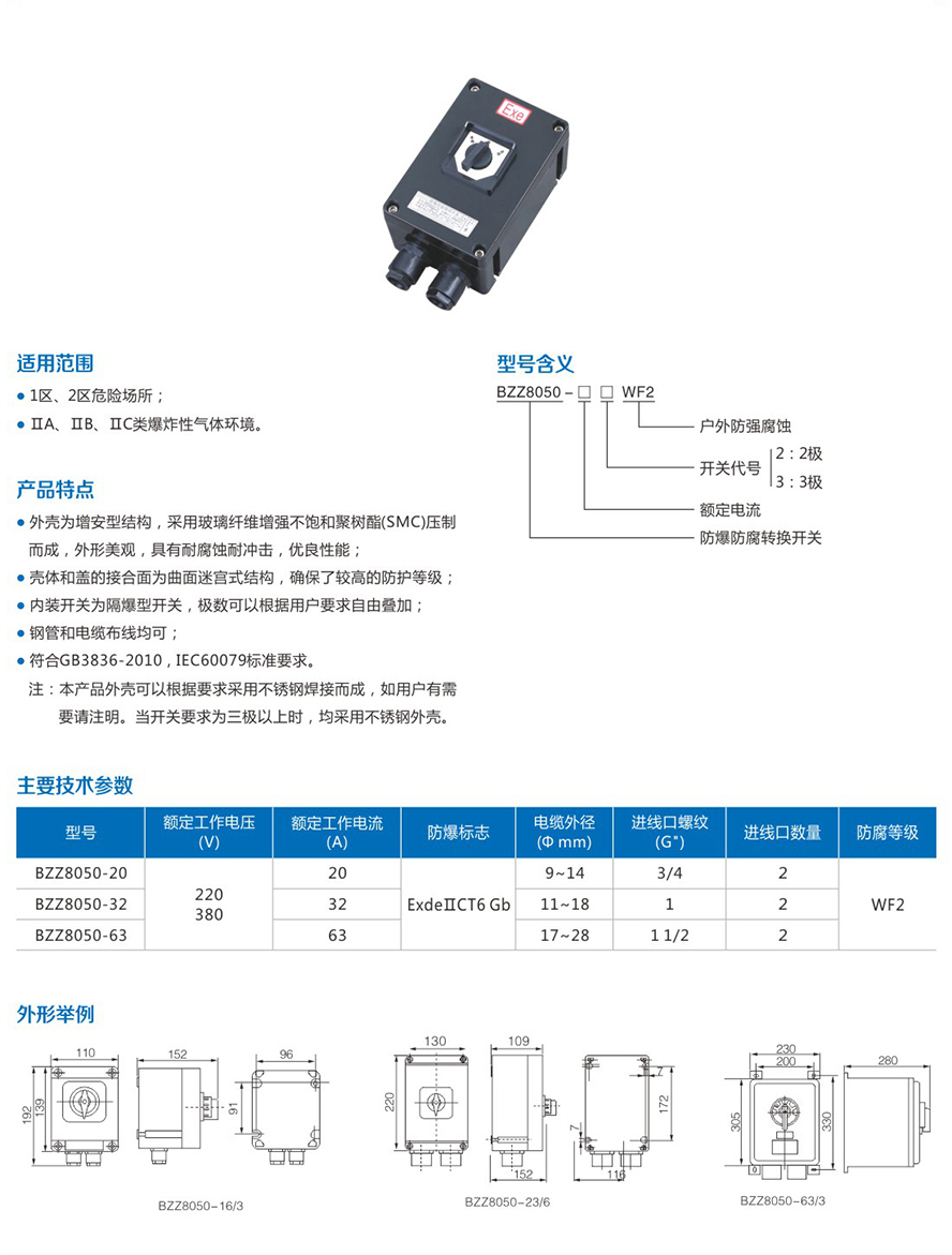 BZZ8050系列防爆防腐转换开关(ⅡC)