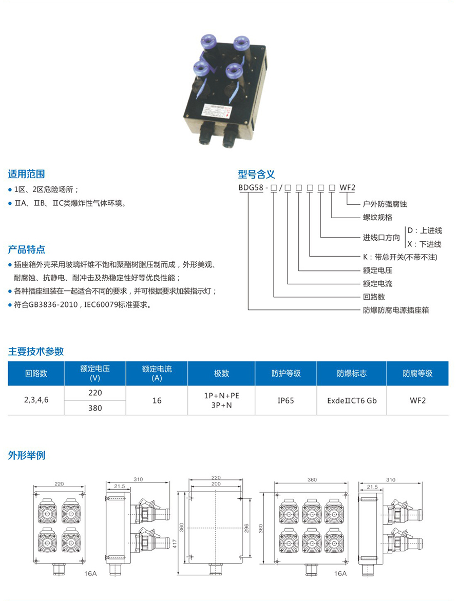 BDG58系列防爆防腐电源插座箱(ⅡC)